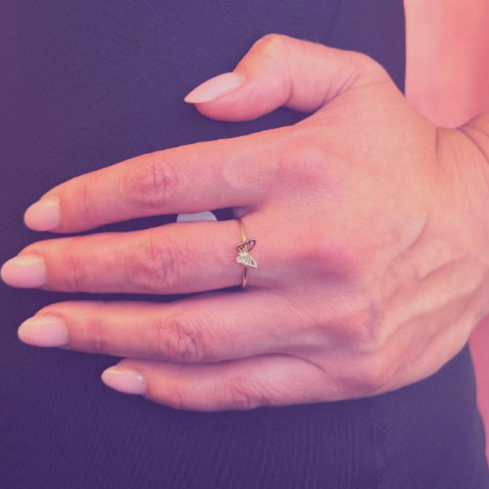 Cut out butterfly in 925 sterling silver ring. Navya London includes a variety of designs from everlasting classic pieces to those with a modern day twist. Our 9ct gold allows for comfortable wear, especially for those with sensitive skin. Our gold products are created by applying traditional processes to contemporary designs inspiration from around the world, ensuring high quality craftsmanship and materials without losing the edge. A perfect gift for yourself or that special person in your life. Your jewel is presented in a beautiful gift box.