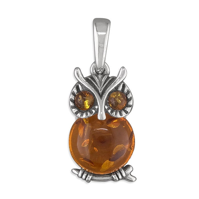 Cognac amber owl sterling silver pendant. Navya London includes a variety of designs from everlasting classic pieces to those with a modern day twist. Our 925 sterling silver allows for comfortable wear, especially for those with sensitive skin. Our silver products are created by applying traditional processes to contemporary designs inspiration from around the world, ensuring high quality craftsmanship and materials without losing the edge. A perfect gift for yourself or that special person in your life. Your jewel is presented in a beautiful gift box.