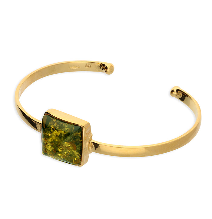 Yellow gold plated sterling silver cuff bangle with a feature cognac amber square.