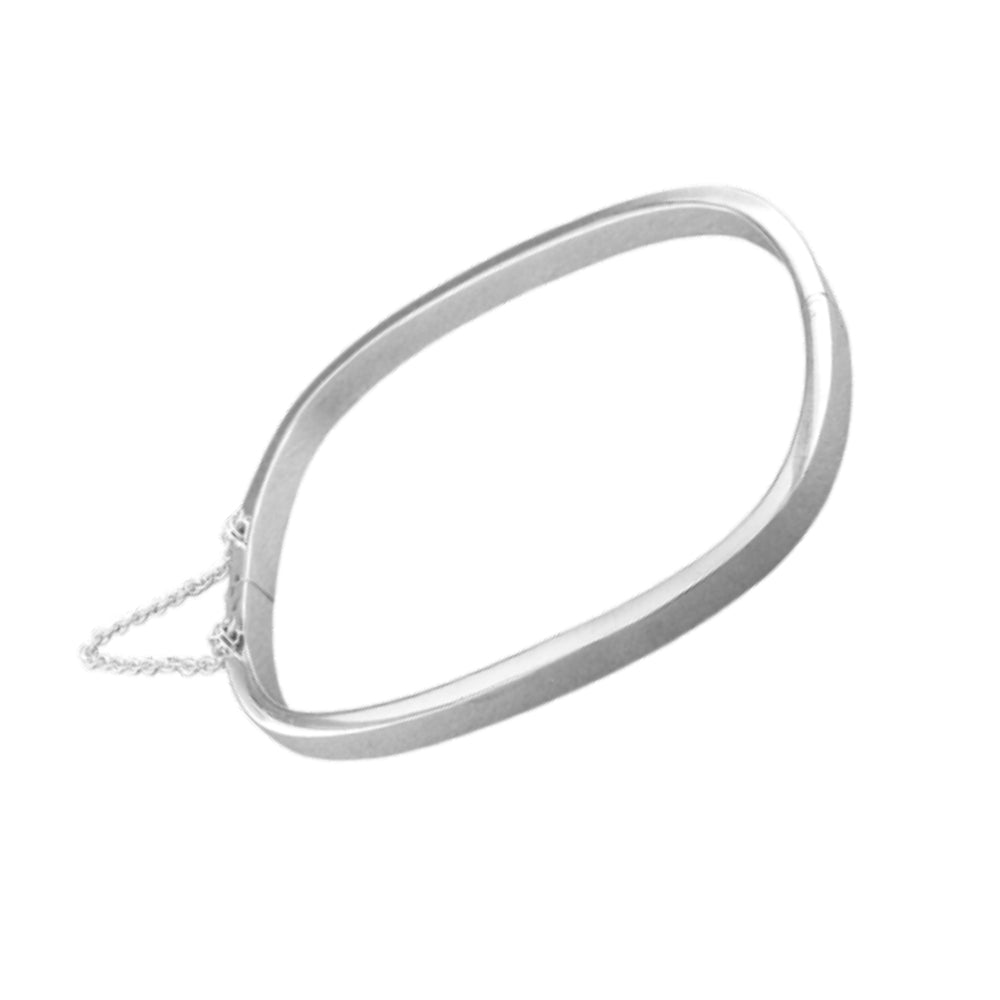 Plain TV shaped hollow clip in 925 sterling silver bangle. Navya London includes a variety of designs from everlasting classic pieces to those with a modern day twist. Our 925 sterling silver allows for comfortable wear, especially for those with sensitive skin. Our silver products are created by applying traditional processes to contemporary designs inspiration from around the world, ensuring high quality craftsmanship and materials without losing the edge. A perfect gift for yourself or that special person in your life. Your jewel is presented in a beautiful gift box.