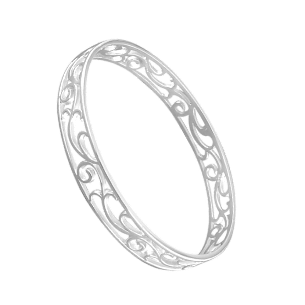 Filigree swirl slave in sterling silver bangle. Navya London includes a variety of designs from everlasting classic pieces to those with a modern day twist. Our 925 sterling silver allows for comfortable wear, especially for those with sensitive skin. Our silver products are created by applying traditional processes to contemporary designs inspiration from around the world, ensuring high quality craftsmanship and materials without losing the edge. A perfect gift for yourself or that special person in your life. Your jewel is presented in a beautiful gift box.