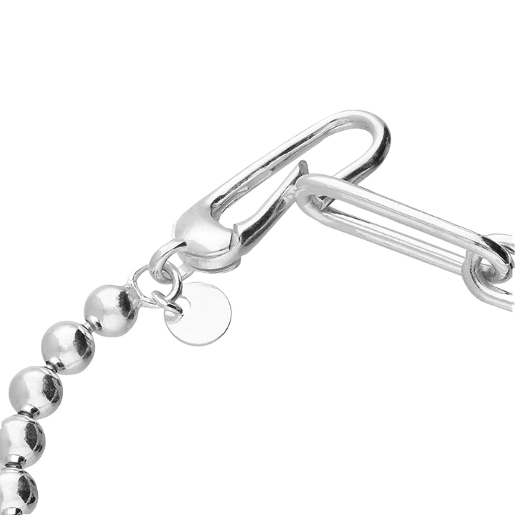 19.5cm Half bead and half paperlink in 925 sterling silver bracelet. Navya London includes a variety of designs from everlasting classic pieces to those with a modern day twist. Our 925 sterling silver allows for comfortable wear, especially for those with sensitive skin. Our silver products are created by applying traditional processes to contemporary designs inspiration from around the world, ensuring high quality craftsmanship and materials without losing the edge. A perfect gift for yourself or that special person in your life. Your jewel is presented in a beautiful gift box.