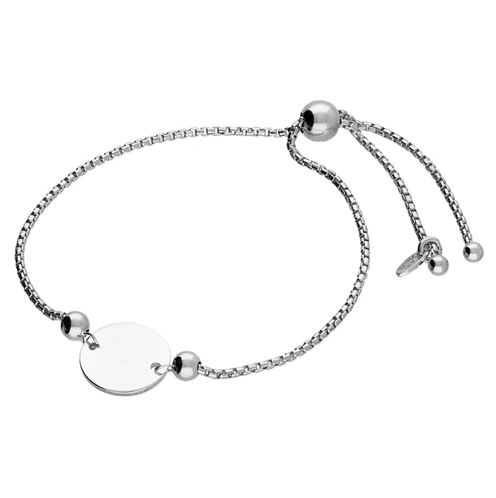 12mm Plain central disc on round box sterling silver slider bracelets. Navya London includes a variety of designs from everlasting classic pieces to those with a modern day twist. Our 925 sterling silver allows for comfortable wear, especially for those with sensitive skin. Our silver products are created by applying traditional processes to contemporary designs inspiration from around the world, ensuring high quality craftsmanship and materials without losing the edge. A perfect gift for yourself or that special person in your life. Your jewel is presented in a beautiful gift box.