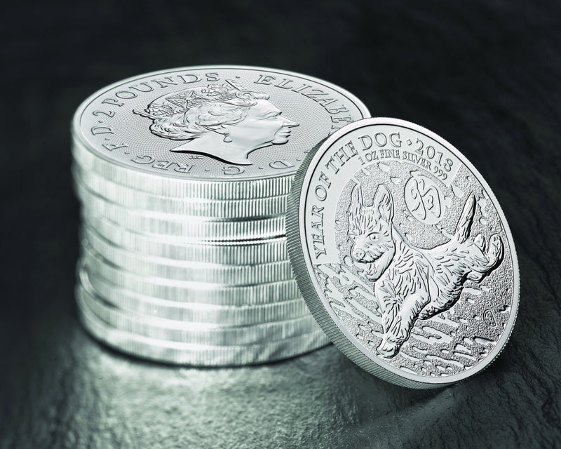 2018 Royal Mint 1oz year of the dog Silver coin. 2018 brings the Year of the Dog, the fifth coin in a series of 12 Lunar coins released by the Royal Mint as part of the The Shēngxiào Collection.