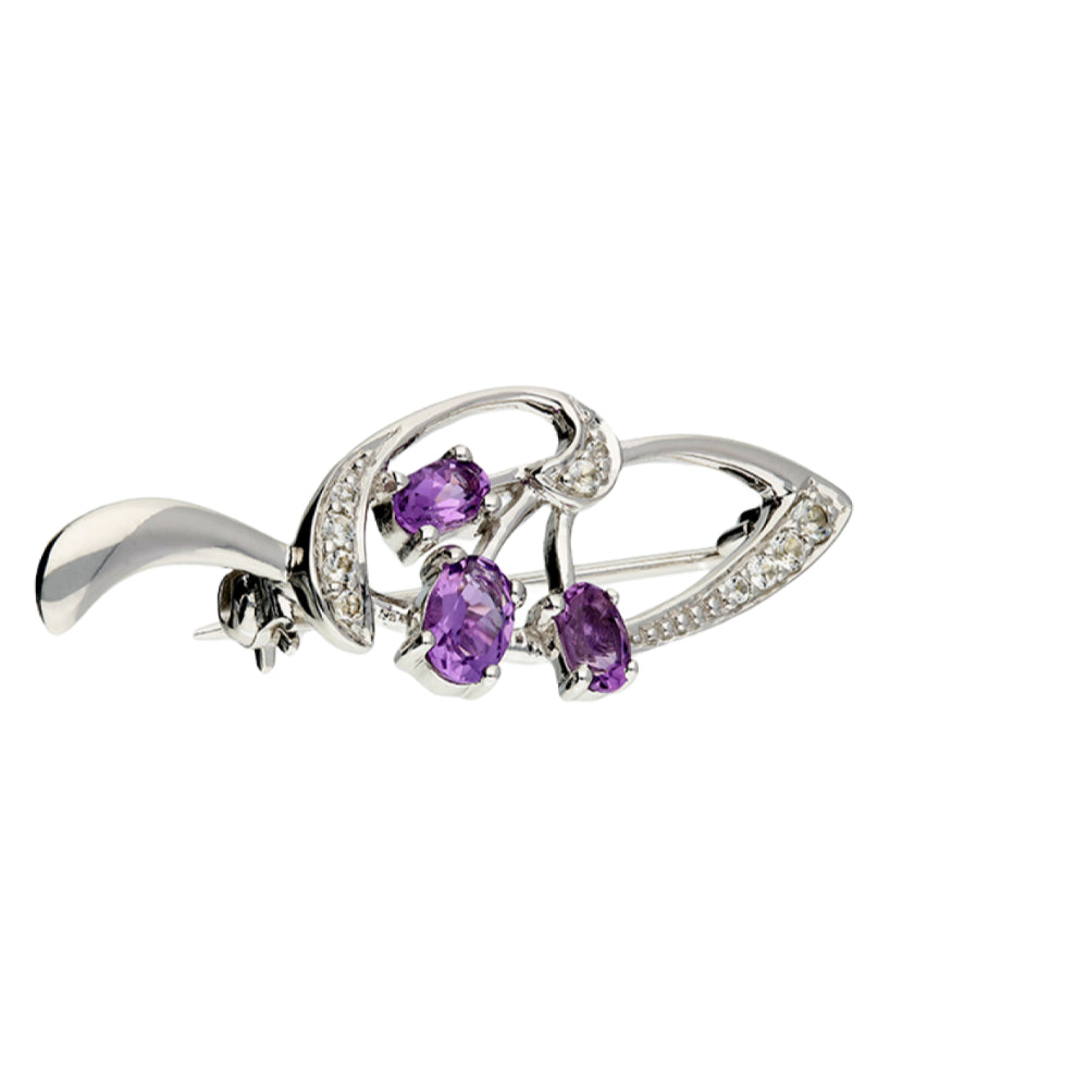 Three Oval Amethyst and Cubic Zirconia Swirls