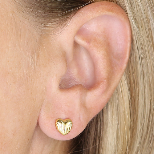 Yellow gold plated small ribbed heart stud in 925 sterling silver earrings. Navya London isn’t just jewellery it’s a statement. From timeless classics to modern silhouettes with an edge, our pieces are designed for those who don’t follow trends they set them.