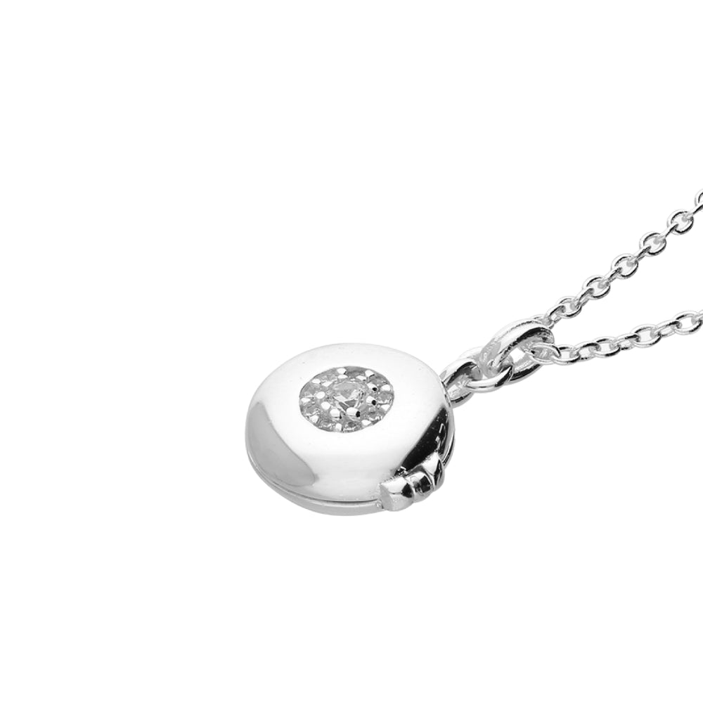 Tiny round locket with central cubic zirconia in 925 sterling silver necklace. Navya London includes a variety of designs from everlasting classic pieces to those with a modern day twist. Our 925 sterling silver allows for comfortable wear, especially for those with sensitive skin. Our silver products are created by applying traditional processes to contemporary designs inspiration from around the world, ensuring high quality craftsmanship and materials without losing the edge. A perfect gift for yourself or that special person in your life. Your jewel is presented in a beautiful gift box.
