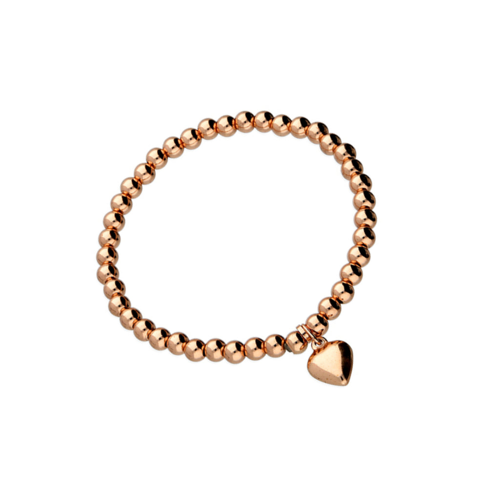 14cm long with rose gold plated elasticated beads with a single heart charm in 925 sterling silver bracelet. Navya London includes a variety of designs from everlasting classic pieces to those with a modern day twist. Our 925 sterling silver allows for comfortable wear, especially for those with sensitive skin. Our silver products are created by applying traditional processes to contemporary designs inspiration from around the world, ensuring high quality craftsmanship and materials without losing the edge. A perfect gift for yourself or that special person in your life. Your jewel is presented in a beautiful gift box.