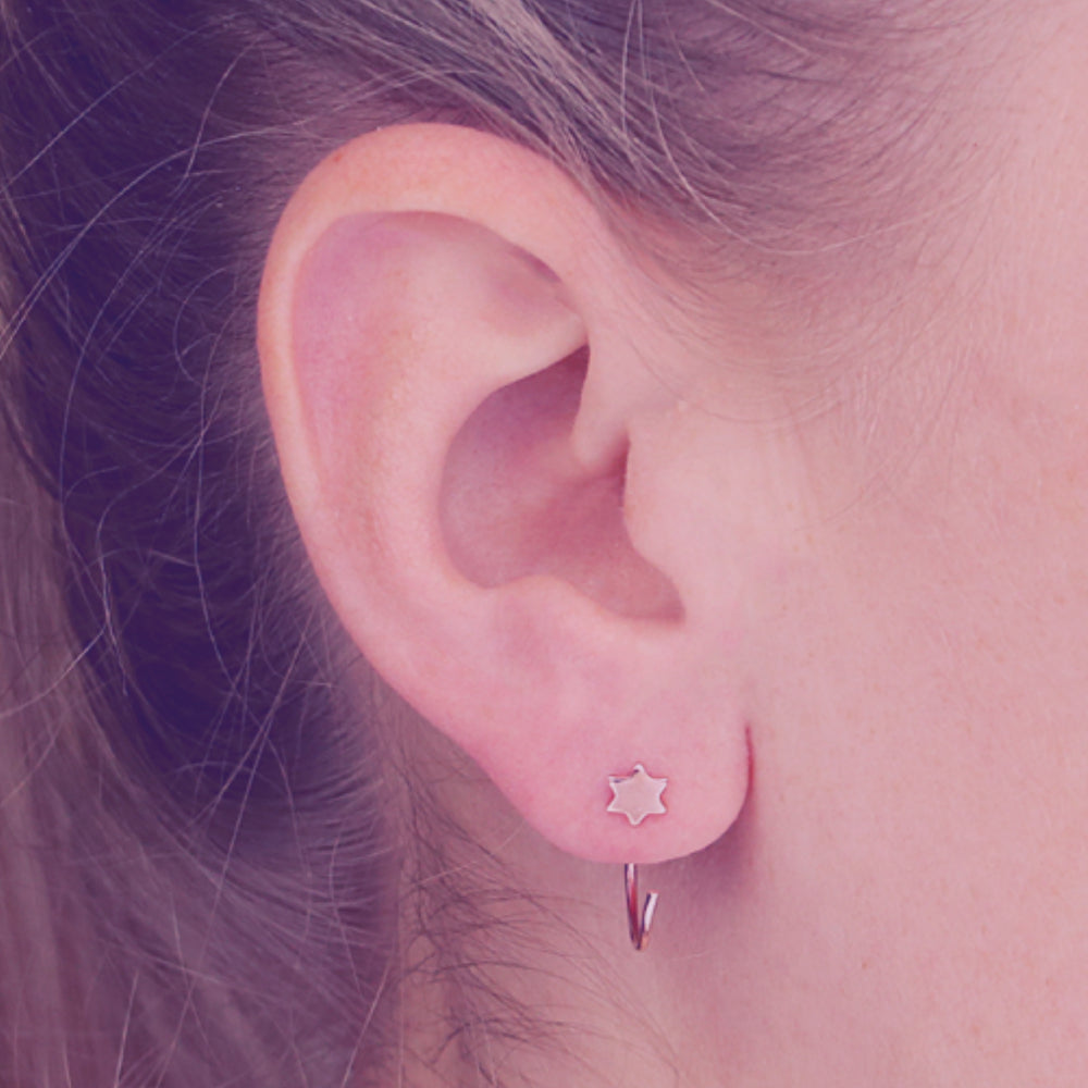 Rose gold plated small flat star pull through hoop in 925 sterling silver. Navya London includes a variety of designs from everlasting classic pieces to those with a modern day twist. Our 925 sterling silver allows for comfortable wear, especially for those with sensitive skin. Our silver products are created by applying traditional processes to contemporary designs inspiration from around the world, ensuring high quality craftsmanship and materials without losing the edge. A perfect gift for yourself or that special person in your life. Your jewel is presented in a beautiful gift box.