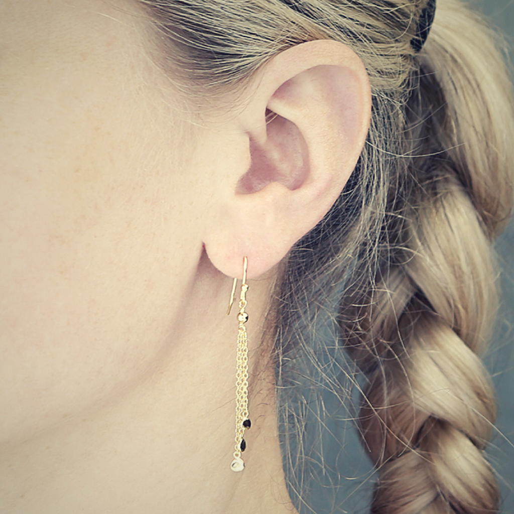 Yellow gold plated bead and abstract disc chain link hook in drop in sterling silver earrings. Navya London includes a variety of designs from everlasting classic pieces to those with a modern day twist. Our 925 sterling silver allows for comfortable wear, especially for those with sensitive skin. Our silver products are created by applying traditional processes to contemporary designs inspiration from around the world, ensuring high quality craftsmanship and materials without losing the edge. A perfect gift for yourself or that special person in your life. Your jewel is presented in a beautiful gift box.