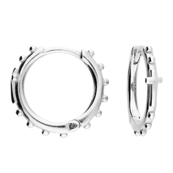 Bead and Cross Detail Huggie Hoop