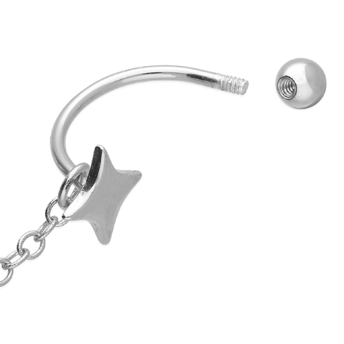 Barbell Earrings Featuring Dangling North Star Charm on Delicate Chain