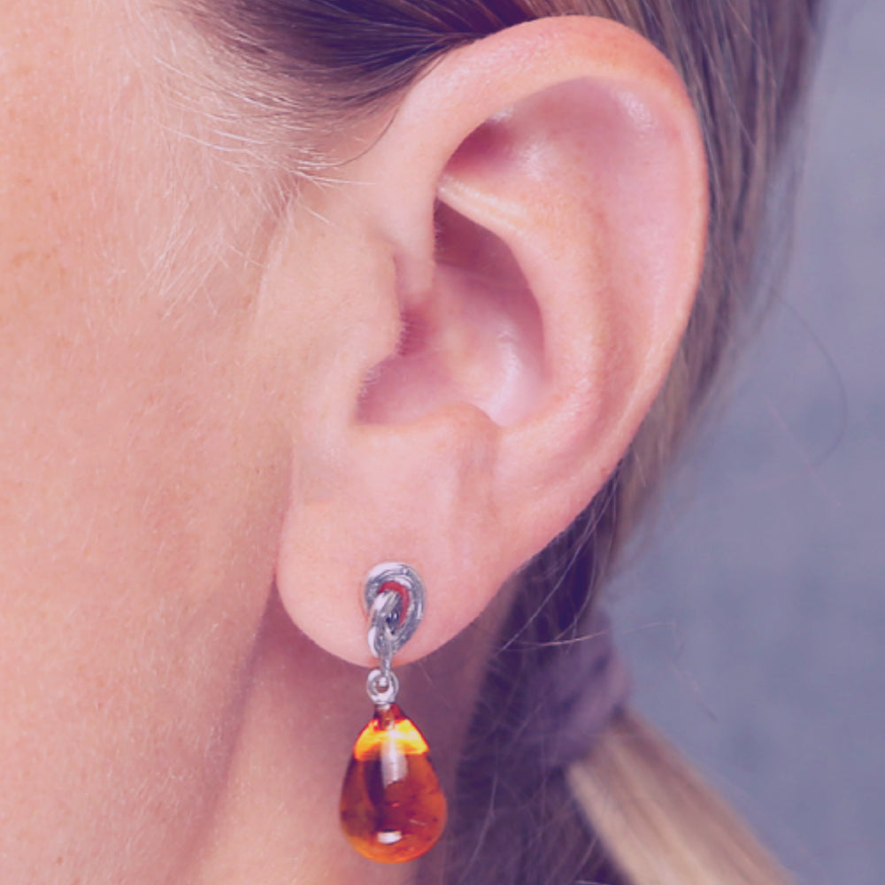 Oxidised twisted knot cognac amber droplet stud drop in 925 sterling silver earrings. Navya London includes a variety of designs from everlasting classic pieces to those with a modern day twist. Our 925 sterling silver allows for comfortable wear, especially for those with sensitive skin. Our silver products are created by applying traditional processes to contemporary designs inspiration from around the world, ensuring high quality craftsmanship and materials without losing the edge. A perfect gift for yourself or that special person in your life. Your jewel is presented in a beautiful gift box.