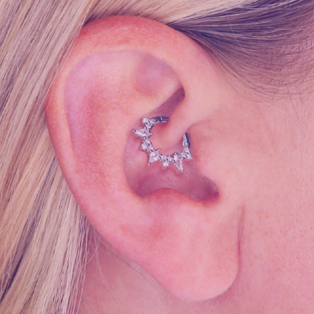 Sun Ray with Cubic Zirconia Daith Hoop