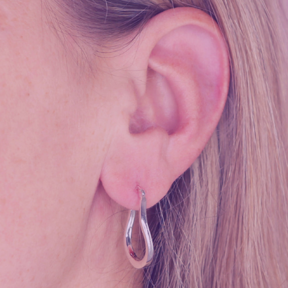 Slightly curved hinged hoops with a polished finish that adds a touch of elegance. Their curved shape gives them a contemporary look in 925 sterling silver earrings. Navya London includes a variety of designs from everlasting classic pieces to those with a modern day twist. Our 9ct, 925 sterling silver allows for comfortable wear, especially for those with sensitive skin. Our silver products are created by applying traditional processes to contemporary designs inspiration from around the world, ensuring high quality craftsmanship and materials without losing the edge. A perfect gift for yourself or that special person in your life. Your jewel is presented in a beautiful gift box.