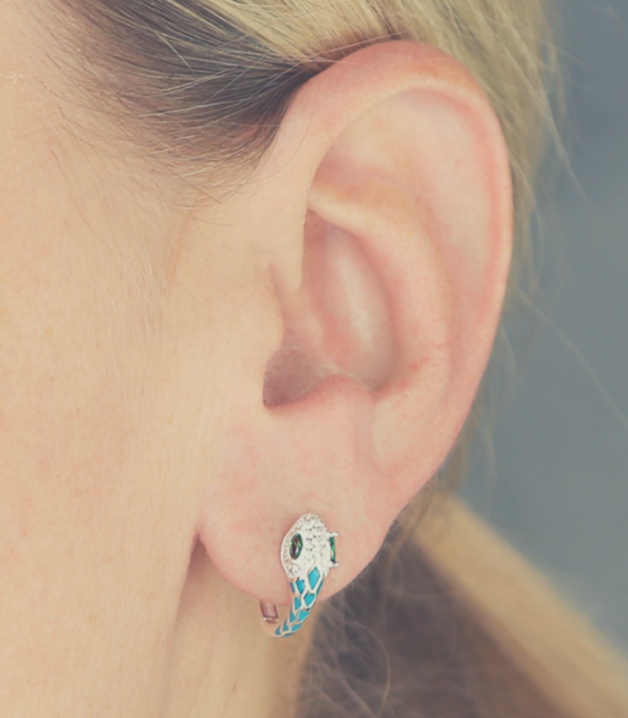 Cubic Zirconia with Emerald Glass and Enamel Turquoise Snake Huggie