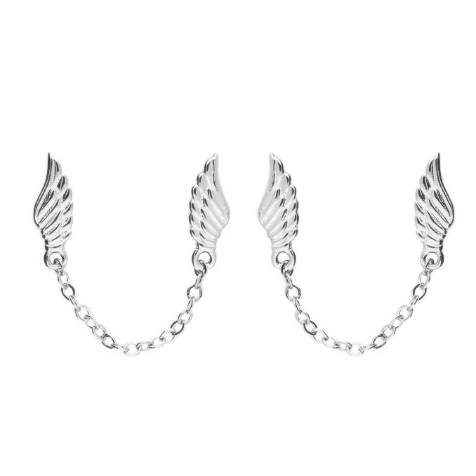 Double wings stud and chain drop in sterling silver earrings. Navya London includes a variety of designs from everlasting classic pieces to those with a modern day twist. Our 925 sterling silver allows for comfortable wear, especially for those with sensitive skin. Our silver products are created by applying traditional processes to contemporary designs inspiration from around the world, ensuring high quality craftsmanship and materials without losing the edge. A perfect gift for yourself or that special person in your life. Your jewel is presented in a beautiful gift box.