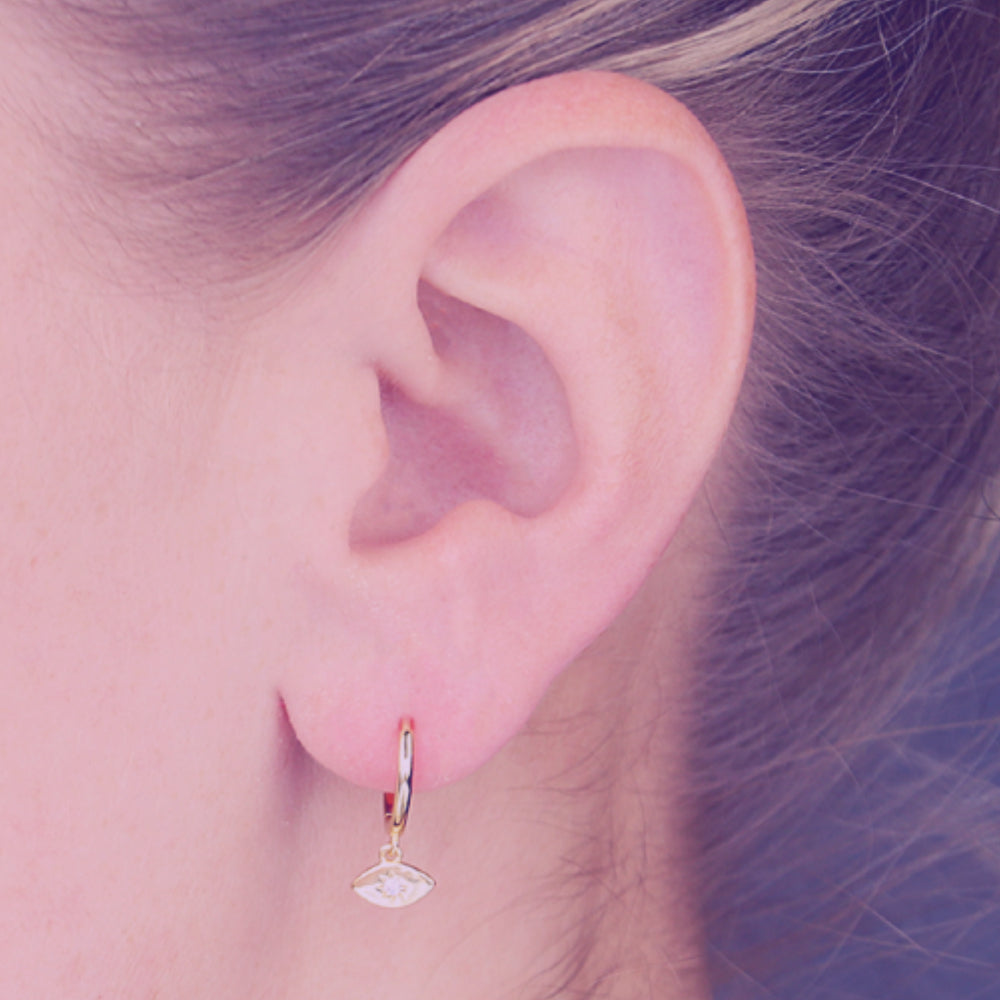 Evil Eye with White Cubic Zirconia Charm Huggie in Gold