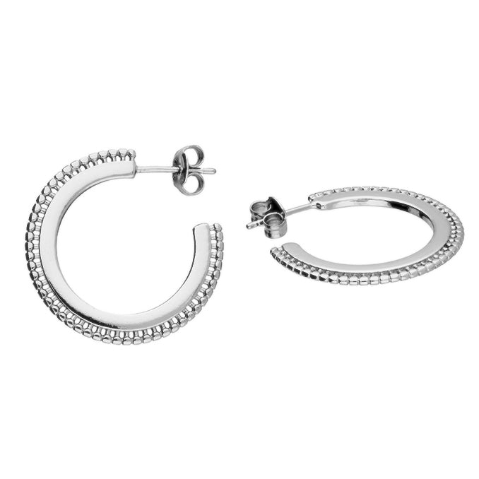 25mm flat bead edge stud hoop in sterling silver earrings. Navya London includes a variety of designs from everlasting classic pieces to those with a modern day twist. Our 925 sterling silver allows for comfortable wear, especially for those with sensitive skin. Our silver products are created by applying traditional processes to contemporary designs inspiration from around the world, ensuring high quality craftsmanship and materials without losing the edge. A perfect gift for yourself or that special person in your life. Your jewel is presented in a beautiful gift box.