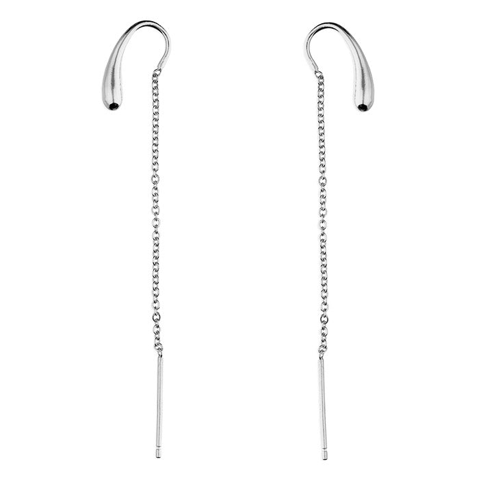 Flow curved pull thru sterling silver earrings. Navya London includes a variety of designs from everlasting classic pieces to those with a modern day twist. Our 925 sterling silver allows for comfortable wear, especially for those with sensitive skin. Our silver products are created by applying traditional processes to contemporary designs inspiration from around the world, ensuring high quality craftsmanship and materials without losing the edge. A perfect gift for yourself or that special person in your life. Your jewel is presented in a beautiful gift box.