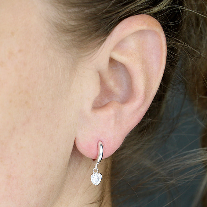 Heart Charm on an Hinged Huggie Hoop