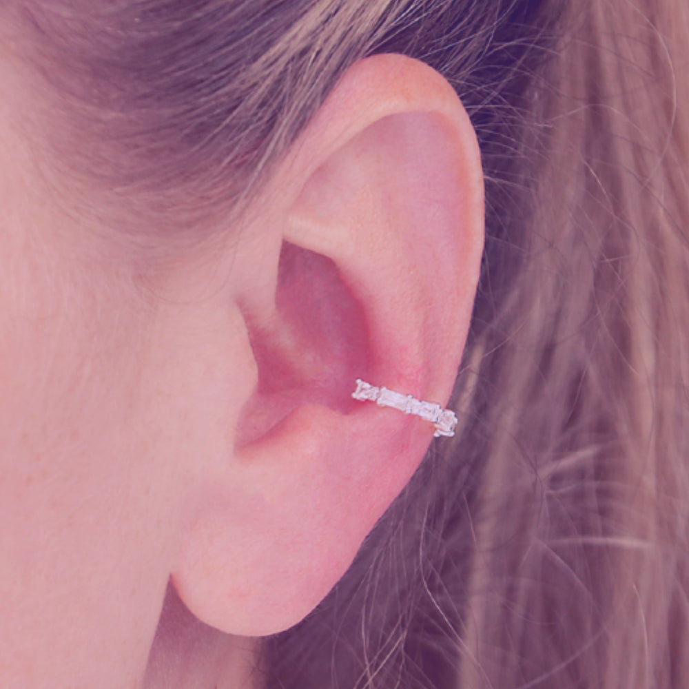 Cubic zirconia baguette ear cuff in 925 sterling silver earrings. Navya London includes a variety of designs from everlasting classic pieces to those with a modern day twist. Our 925 sterling silver allows for comfortable wear, especially for those with sensitive skin. Our silver products are created by applying traditional processes to contemporary designs inspiration from around the world, ensuring high quality craftsmanship and materials without losing the edge. A perfect gift for yourself or that special person in your life. Your jewel is presented in a beautiful gift box.