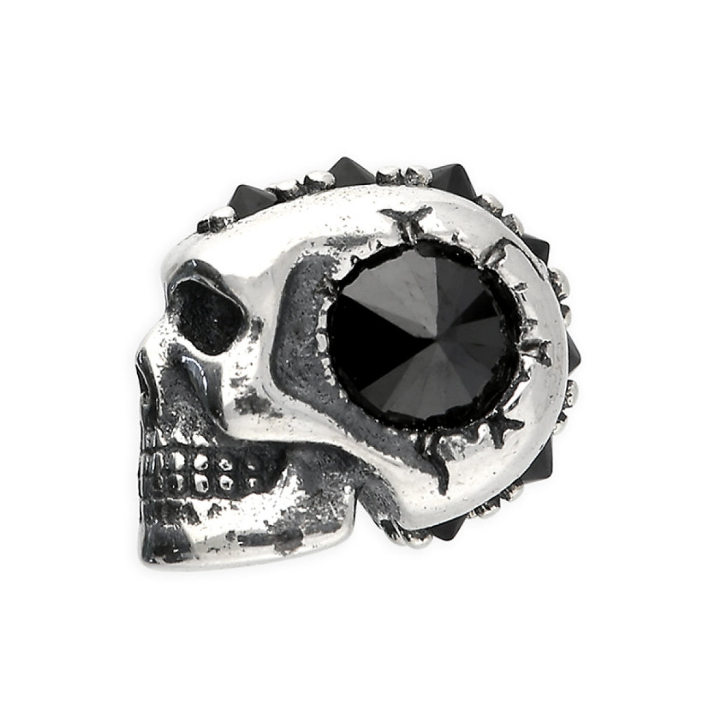 Single Unisex Skull Stud with Black Cubic Zirconia