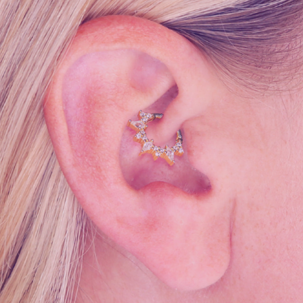 Sun Ray Cubic Zirconia Daith Hoop in Gold