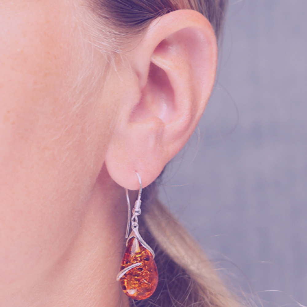 Cognac amber teardrop with wrap around tendril hook in drop in 925 sterling silver earrings. Navya London includes a variety of designs from everlasting classic pieces to those with a modern day twist. Our 9ct, 925 sterling silver allows for comfortable wear, especially for those with sensitive skin. Our silver products are created by applying traditional processes to contemporary designs inspiration from around the world, ensuring high quality craftsmanship and materials without losing the edge. A perfect gift for yourself or that special person in your life. Your jewel is presented in a beautiful gift box.