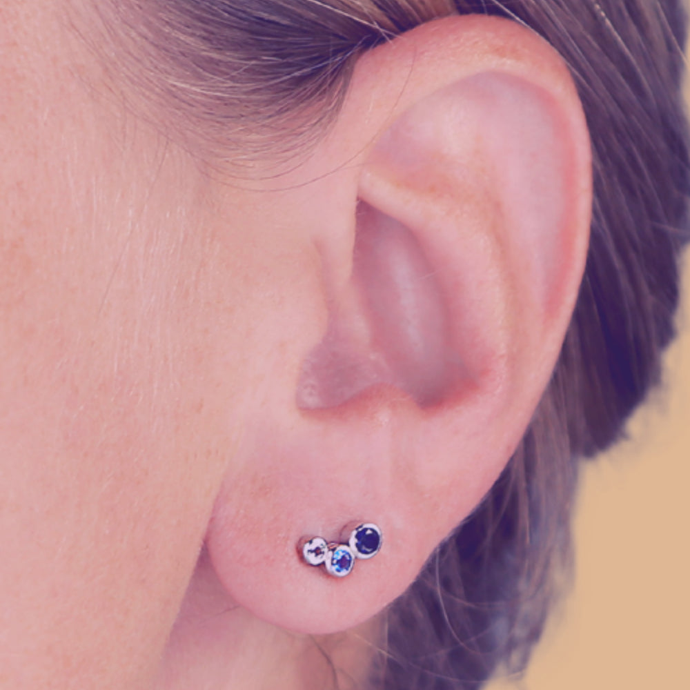 Three rub over graduated light, medium and dark blue cubic zirconias stud (stones alternate randomly) in 925 sterling silver earrings. Navya London includes a variety of designs from everlasting classic pieces to those with a modern day twist. Our 925 sterling silver allows for comfortable wear, especially for those with sensitive skin. Our silver products are created by applying traditional processes to contemporary designs inspiration from around the world, ensuring high quality craftsmanship and materials without losing the edge. A perfect gift for yourself or that special person in your life. Your jewel is presented in a beautiful gift box.