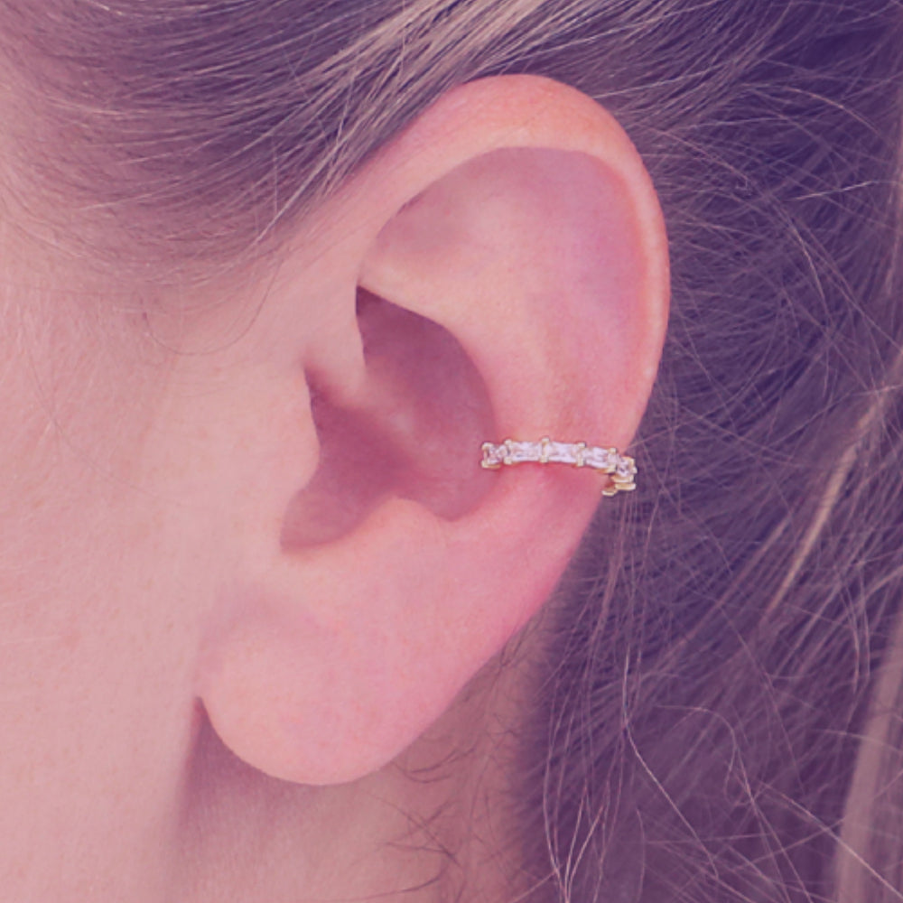 Yellow gold plated cubic zirconia baguette ear cuff in 925 sterling silver earrings. Navya London includes a variety of designs from everlasting classic pieces to those with a modern day twist. Our 925 sterling silver allows for comfortable wear, especially for those with sensitive skin. Our silver products are created by applying traditional processes to contemporary designs inspiration from around the world, ensuring high quality craftsmanship and materials without losing the edge. A perfect gift for yourself or that special person in your life. Your jewel is presented in a beautiful gift box.
