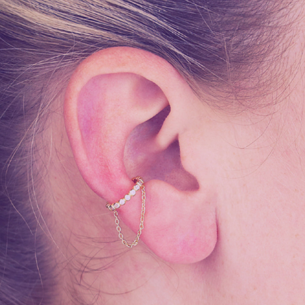 Cubic Zirconia Chain Link Drop Ear Cuff in Gold