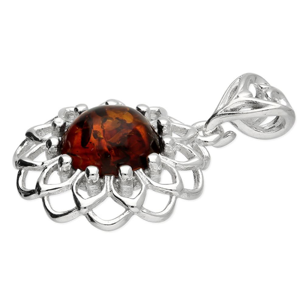 Flower with a Round Amber Stone Pendant