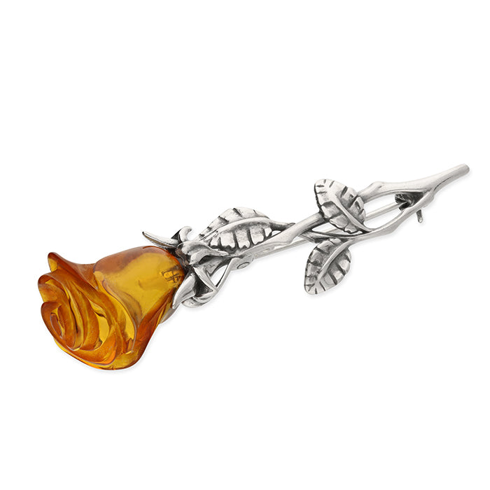 Cognac amber rose sterling silver brooch. Navya London includes a variety of designs from everlasting classic pieces to those with a modern day twist. Our 925 sterling silver allows for comfortable wear, especially for those with sensitive skin. Our silver products are created by applying traditional processes to contemporary designs inspiration from around the world, ensuring high quality craftsmanship and materials without losing the edge. A perfect gift for yourself or that special person in your life. Your jewel is presented in a beautiful gift box.