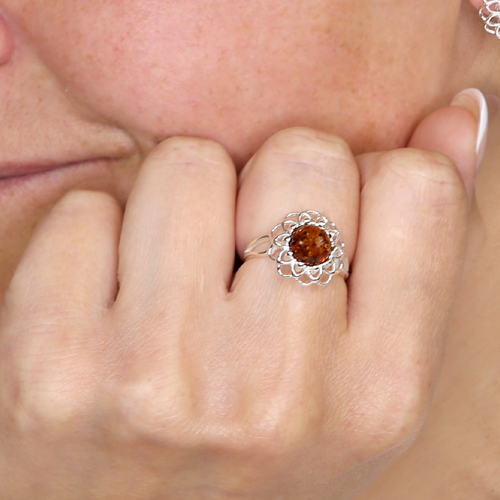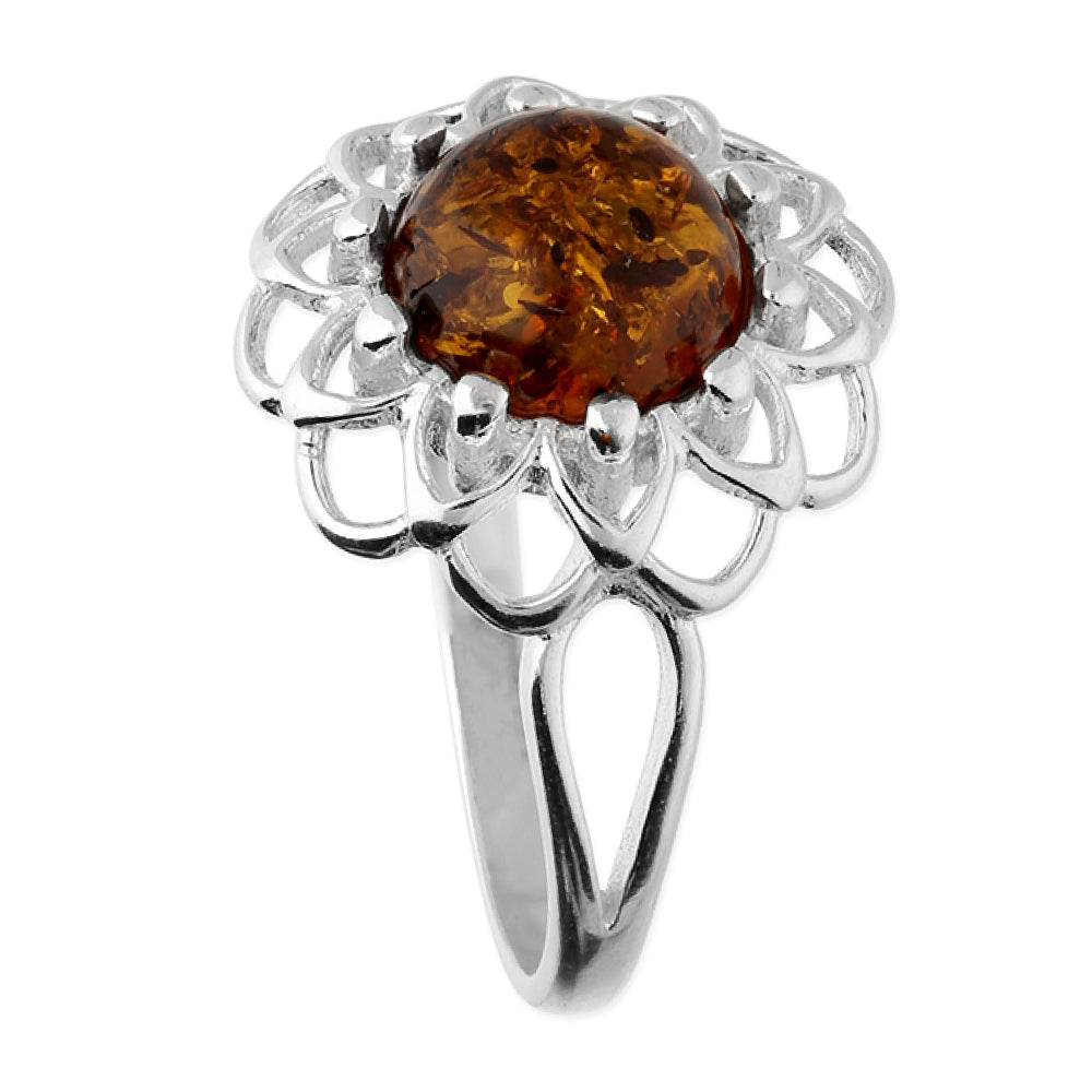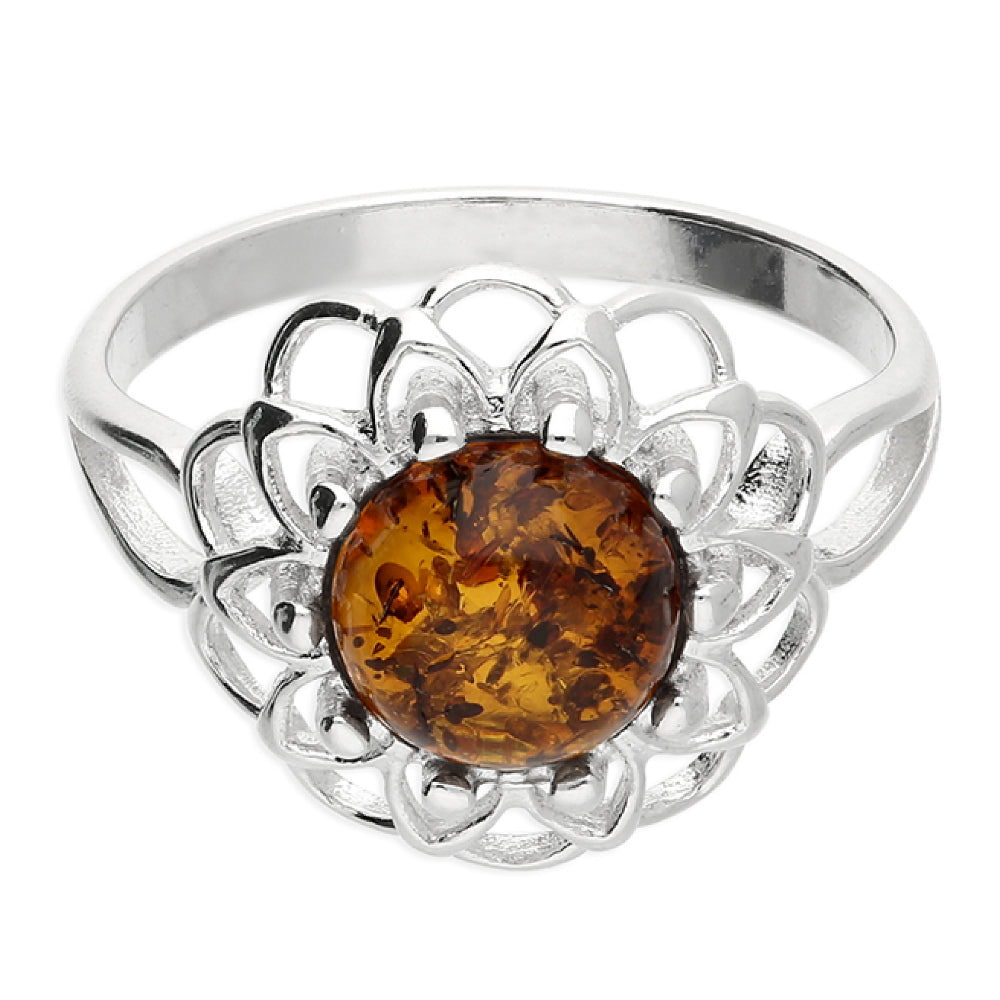 Flower Design with a Round Amber Centre