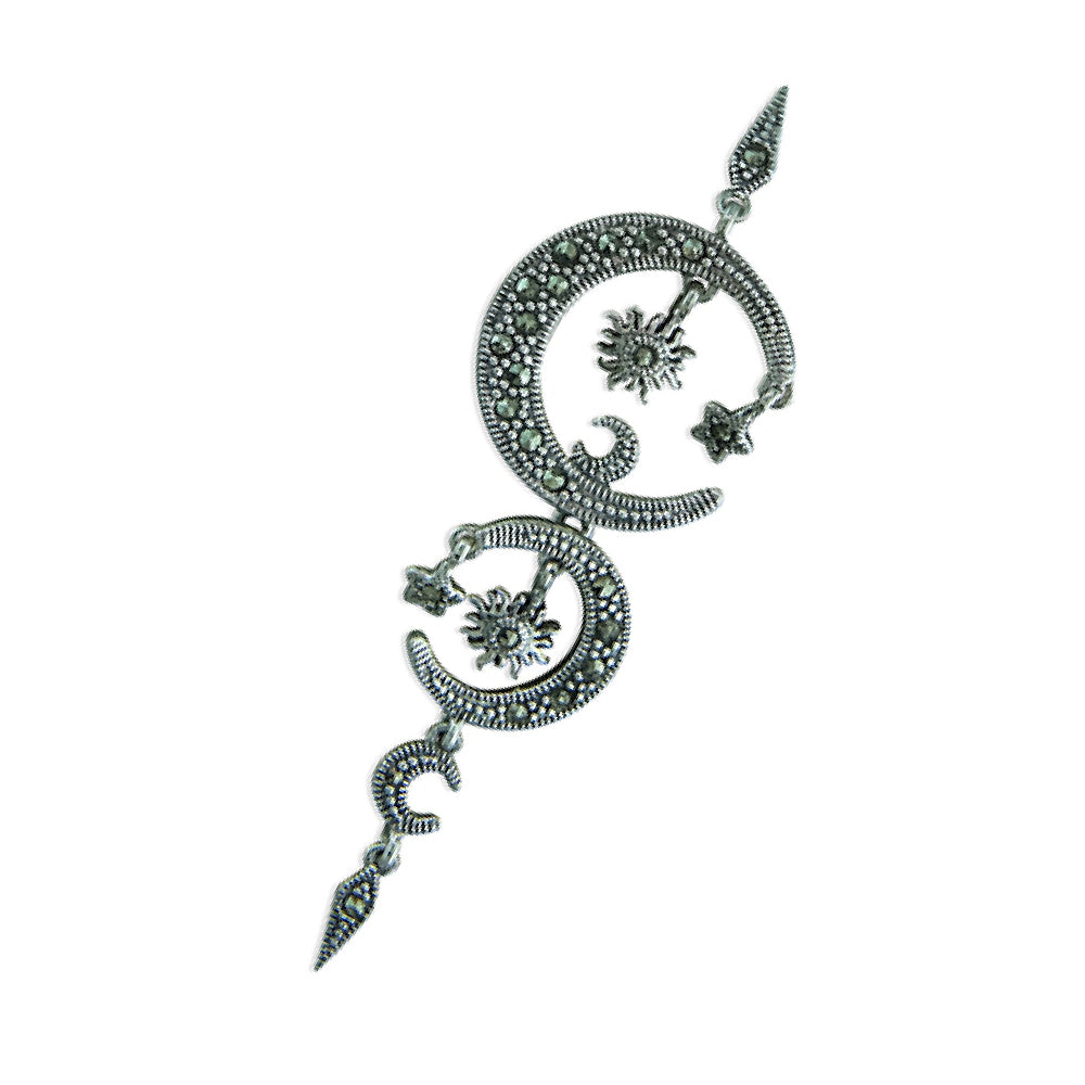 Marcasite star and moon universe in 925 sterling silver pendant. Navya London isn’t just jewellery it’s a statement. From timeless classics to modern silhouettes with an edge, our pieces are designed for those who don’t follow trends they set them.