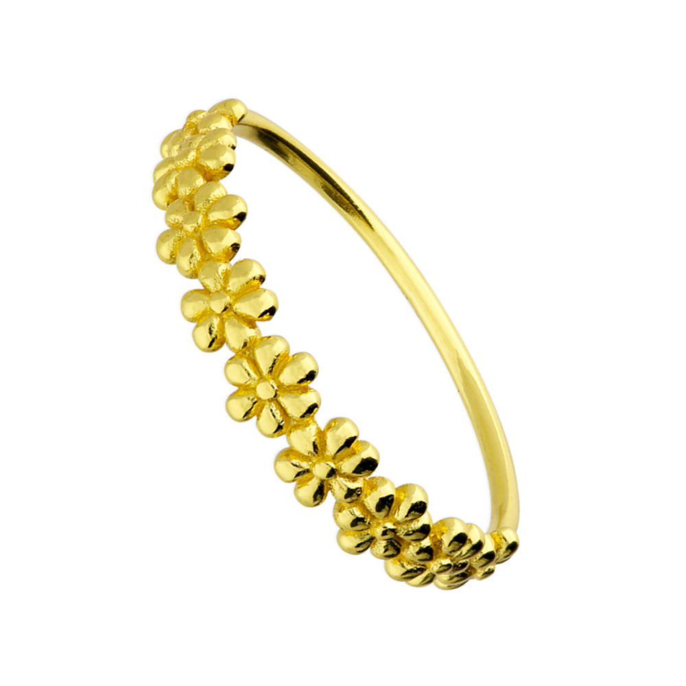 Yellow gold plated multi flower beads in 925 sterling silver ring. Navya London includes a variety of designs from everlasting classic pieces to those with a modern day twist. Our 9ct gold allows for comfortable wear, especially for those with sensitive skin. Our gold products are created by applying traditional processes to contemporary designs inspiration from around the world, ensuring high quality craftsmanship and materials without losing the edge. A perfect gift for yourself or that special person in your life. Your jewel is presented in a beautiful gift box.