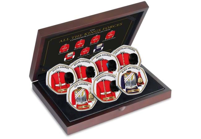 - Featuring SEVEN original designs by Jean-Michel Girard depicting the uniforms of each of the Regiments in His Majesty’s Household Division – The King’s Forces.