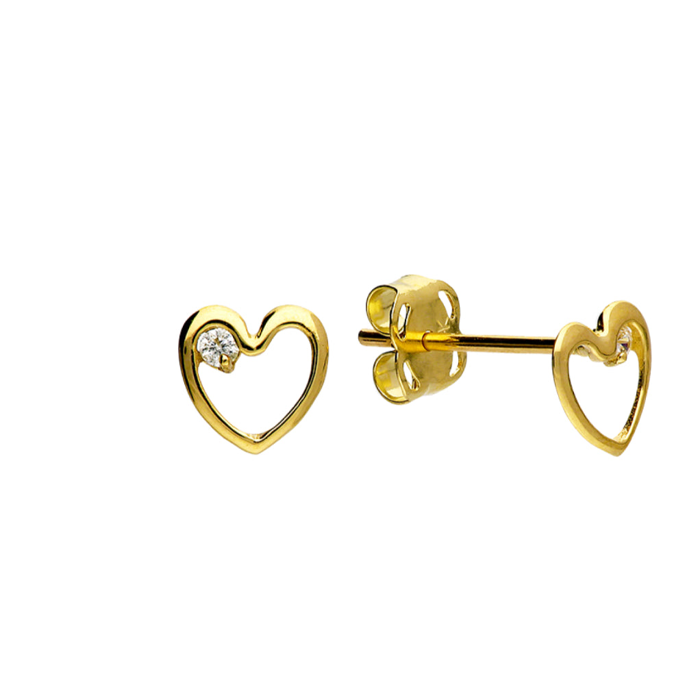 Gold Heart Outline with Cubic Zirconia Stud