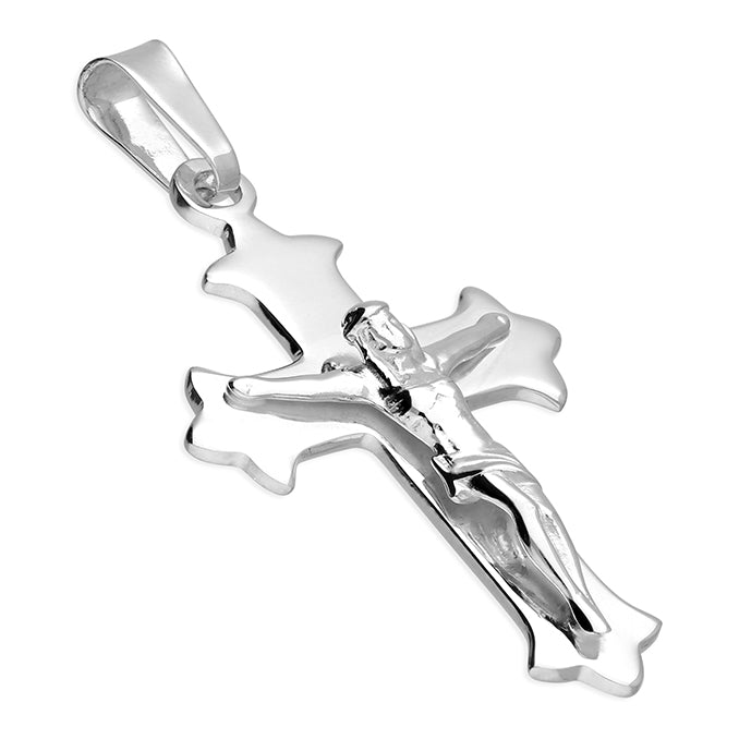 Large fancy crucifix in 925 sterling silver cross. Navya London includes a variety of designs from everlasting classic pieces to those with a modern day twist. Our 925 sterling silver allows for comfortable wear, especially for those with sensitive skin. Our silver products are created by applying traditional processes to contemporary designs inspiration from around the world, ensuring high quality craftsmanship and materials without losing the edge. A perfect gift for yourself or that special person in your life. Your jewel is presented in a beautiful gift box.