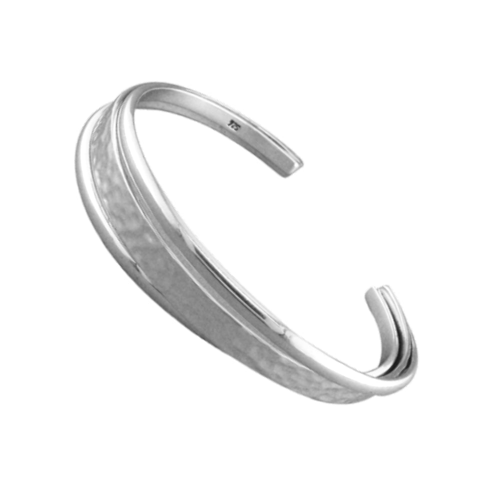 Three row solid cuff with textured centre strand in 925 sterling silver bangle. Navya London includes a variety of designs from everlasting classic pieces to those with a modern day twist. Our 925 sterling silver allows for comfortable wear, especially for those with sensitive skin. Our silver products are created by applying traditional processes to contemporary designs inspiration from around the world, ensuring high quality craftsmanship and materials without losing the edge. A perfect gift for yourself or that special person in your life. Your jewel is presented in a beautiful gift box.