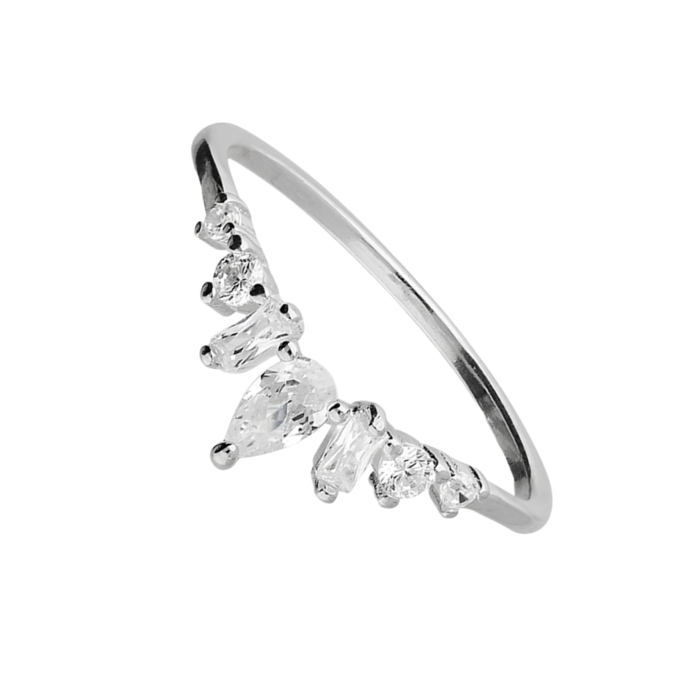 Cubic zirconia icicle wishbone in 925 sterling silver ring. Navya London includes a variety of designs from everlasting classic pieces to those with a modern day twist. Our 9ct gold allows for comfortable wear, especially for those with sensitive skin. Our gold products are created by applying traditional processes to contemporary designs inspiration from around the world, ensuring high quality craftsmanship and materials without losing the edge. A perfect gift for yourself or that special person in your life. Your jewel is presented in a beautiful gift box.