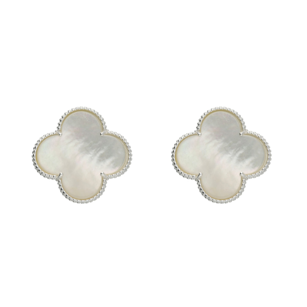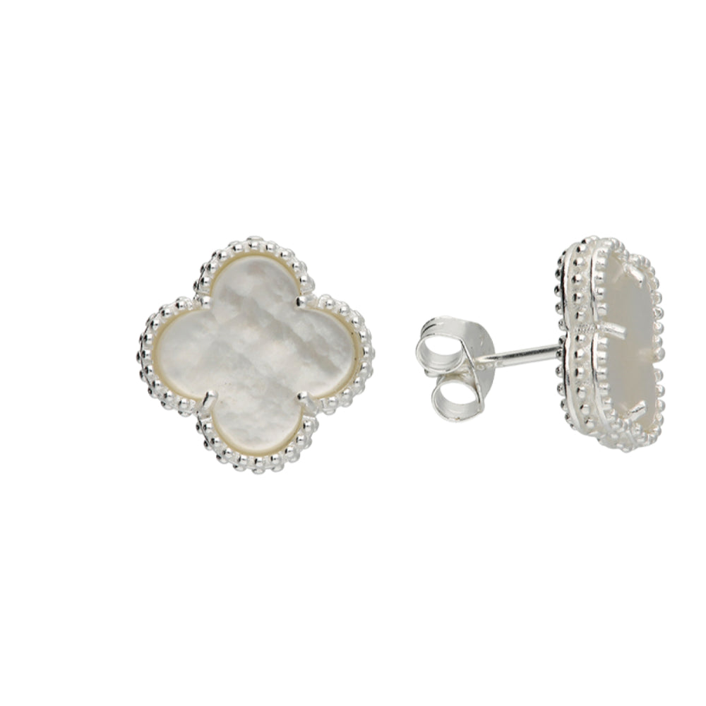 Large classic quatrefoil mother of pearl in 925 sterling silver earrings. Navya London includes a variety of designs from everlasting classic pieces to those with a modern day twist. Our 9ct, 925 sterling silver allows for comfortable wear, especially for those with sensitive skin. Our silver products are created by applying traditional processes to contemporary designs inspiration from around the world, ensuring high quality craftsmanship and materials without losing the edge. A perfect gift for yourself or that special person in your life. Your jewel is presented in a beautiful gift box.