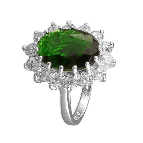 Large Oval Cluster with Synthetic Emerald & White Zirconia