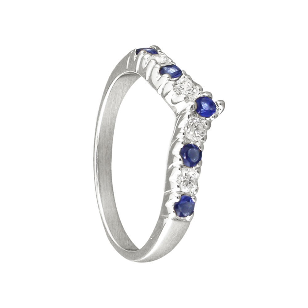 Synthetic sapphire and cubic zirconia half wishbone in 925 sterling silver ring. Navya London includes a variety of designs from everlasting classic pieces to those with a modern day twist. Our 9ct gold allows for comfortable wear, especially for those with sensitive skin. Our gold products are created by applying traditional processes to contemporary designs inspiration from around the world, ensuring high quality craftsmanship and materials without losing the edge. A perfect gift for yourself or that special person in your life. Your jewel is presented in a beautiful gift box.