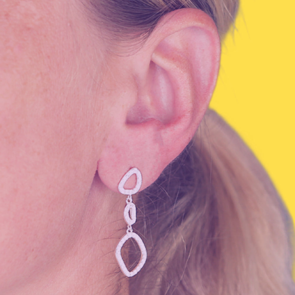 Triple organic cubic zirconia stud drop in 925 sterling silver earrings. Navya London includes a variety of designs from everlasting classic pieces to those with a modern day twist. Our 925 sterling silver allows for comfortable wear, especially for those with sensitive skin. Our silver products are created by applying traditional processes to contemporary designs inspiration from around the world, ensuring high quality craftsmanship and materials without losing the edge. A perfect gift for yourself or that special person in your life. Your jewel is presented in a beautiful gift box.