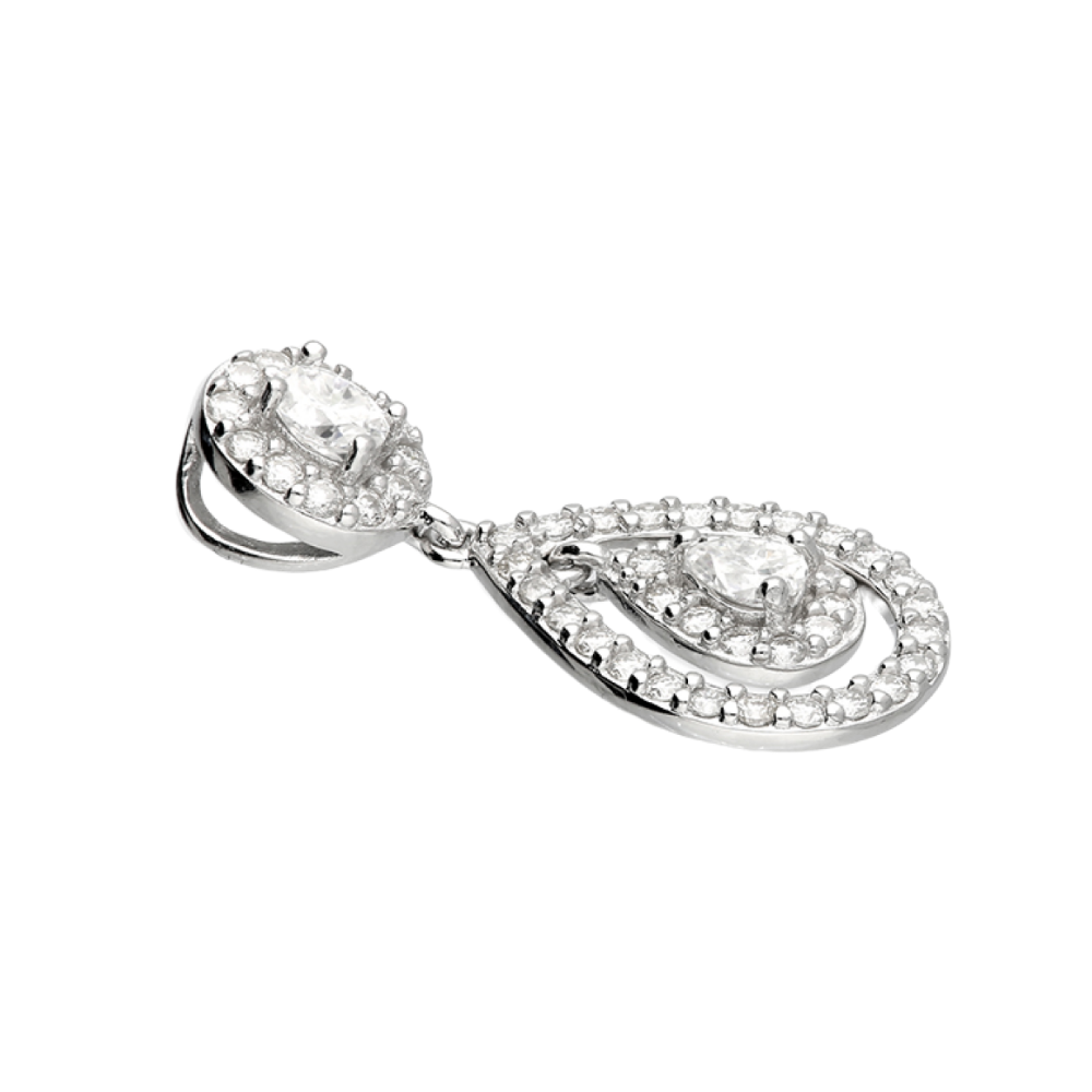 A pretty pendant in a halo design with total diamond equivalent carat weight 0.77. measuring approximately 2.5 cm, this pendant provides a bold yet elegant look in 925 sterling silver. Navya London includes a variety of designs from everlasting classic pieces to those with a modern day twist. Our 925 sterling silver allows for comfortable wear, especially for those with sensitive skin. Our silver products are created by applying traditional processes to contemporary designs inspiration from around the world, ensuring high quality craftsmanship and materials without losing the edge. A perfect gift for yourself or that special person in your life. Your jewel is presented in a beautiful gift box.