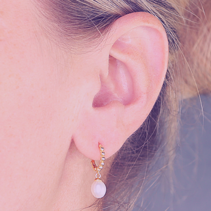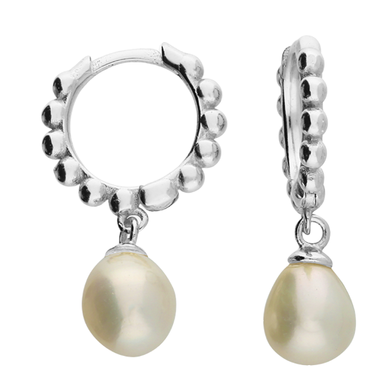 Freshwater pearl charm on a 10mm huggie hoop in 925 sterling silver earrings. Navya London includes a variety of designs from everlasting classic pieces to those with a modern day twist. Our 925 sterling silver allows for comfortable wear, especially for those with sensitive skin. Our silver products are created by applying traditional processes to contemporary designs inspiration from around the world, ensuring high quality craftsmanship and materials without losing the edge. A perfect gift for yourself or that special person in your life. Your jewel is presented in a beautiful gift box.