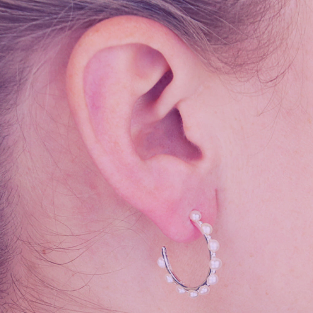 22mm alternate freshwater pearl and bead stud hoop in 925 sterling silver earrings. Navya London includes a variety of designs from everlasting classic pieces to those with a modern day twist. Our 925 sterling silver allows for comfortable wear, especially for those with sensitive skin. Our silver products are created by applying traditional processes to contemporary designs inspiration from around the world, ensuring high quality craftsmanship and materials without losing the edge. A perfect gift for yourself or that special person in your life. Your jewel is presented in a beautiful gift box.