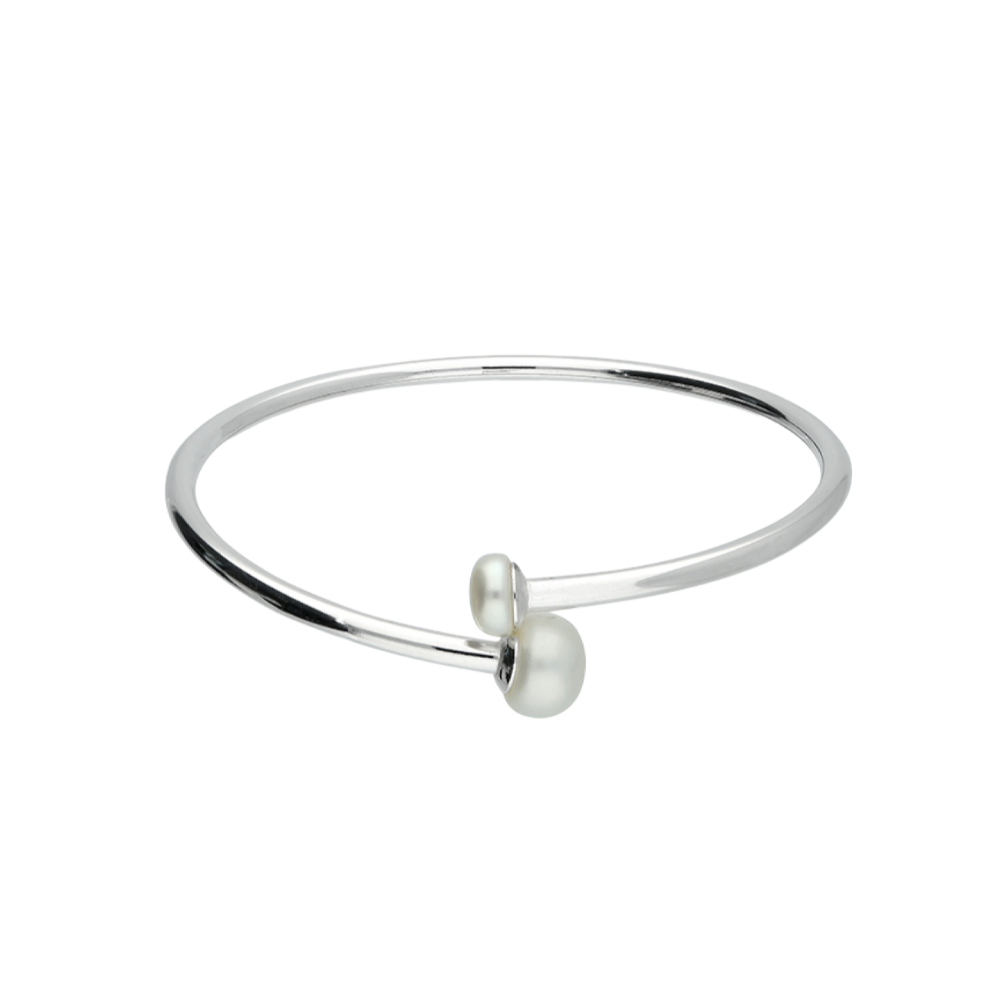 A contemporary Italian design with a minimalist twist fitting, accented by two freshwater pearls. The polished silver finish enhances the bangle’s sleek, modern aesthetic, while the pearls offer a classic, timeless charm in 925 sterling silver. Navya London includes a variety of designs from everlasting classic pieces to those with a modern day twist. Our 925 sterling silver allows for comfortable wear, especially for those with sensitive skin. Our silver products are created by applying traditional processes to contemporary designs inspiration from around the world, ensuring high quality craftsmanship and materials without losing the edge. A perfect gift for yourself or that special person in your life. Your jewel is presented in a beautiful gift box.